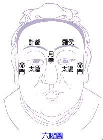 公笃曰。六曜之图。多验气色。今故撰之。如月孛不宜冲破。两眉不宜欺凌。若一欺凌。六亲害累矣。色宜紫黄。主官禄。忌黑暗。主危损。罗计二曜忌油暗。则主牵累惊险损害。太阳太阴则忌青黑。应哭泣。或疾厄。左男右女。命门二曜。主疾厄。一黑则肾绝而死灾也。