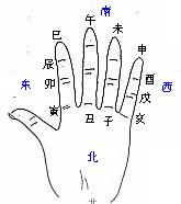 古人论十干就分阴阳,论五行就是阳统阴,其顺、逆、分、合都及有妙理,都是自然之理。在实践检验中,不论是阳干顺推,阴干逆推,还是沐浴为日干生旺之地,都是准确的,读者也可以自己推验。 记用十干寄十二宫的各个阶段旺衰非常重要,预测中时刻少不它。记忆时,从掌诀图上按五阳干长生、沐浴、冠带、临官、帝旺、衰、病、死、墓、绝等的秩序从日干的长生地顺推点读,五阴干按长生、沐浴......的秩序从日干的长生地逆推点读,只要记住是阳干甲、丙戊、庚、壬的长生分别是亥、寅、巳、申环手指顺点至出生之月便知其处何种状态;阴干乙、丁已、辛、癸的长生分别是午、酉、子、卯,环手指逆推至欲推之月,便知其处何种状态,"十干长生顺逆掌诀图"的用法,熟练之下,头头是道,非常方便,随时可用。如图: