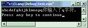 #include<stdio.h>#include<conio.h>intmain(void) {charch; //注意:循环体内一句也没有写for(ch = getche(); ch != 'q'; ch = getche()) ; printf("你输入了q字符。\n");return0; }